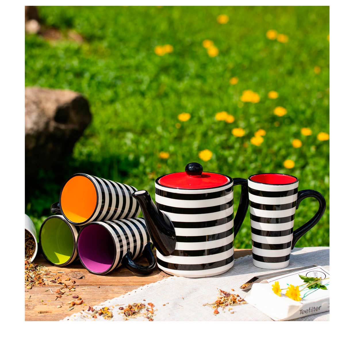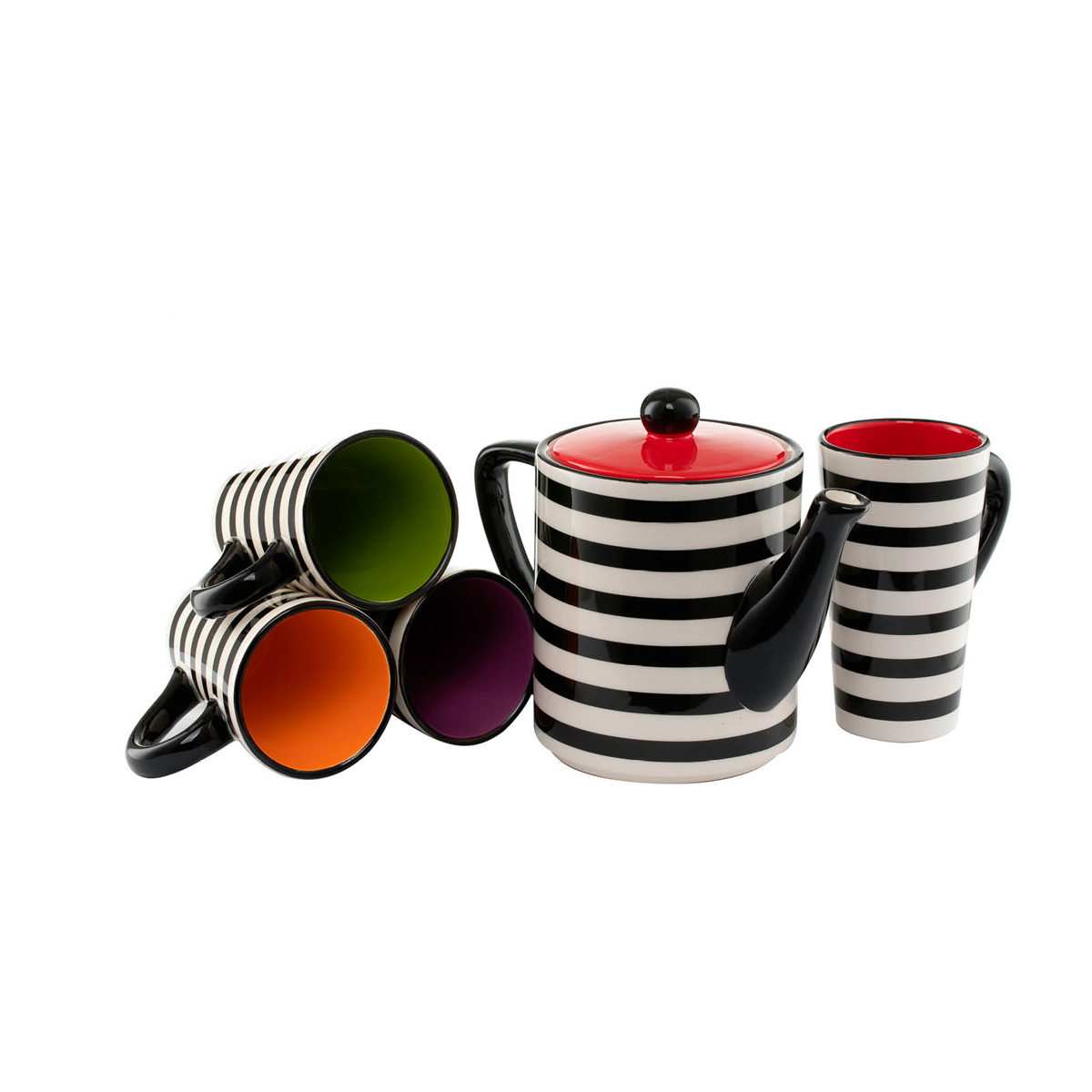 SCHWARZ/WEISS GESTREIFT Porzellan superleicht und superdünn Spülmaschinen- und mikrowellenfest mehr
