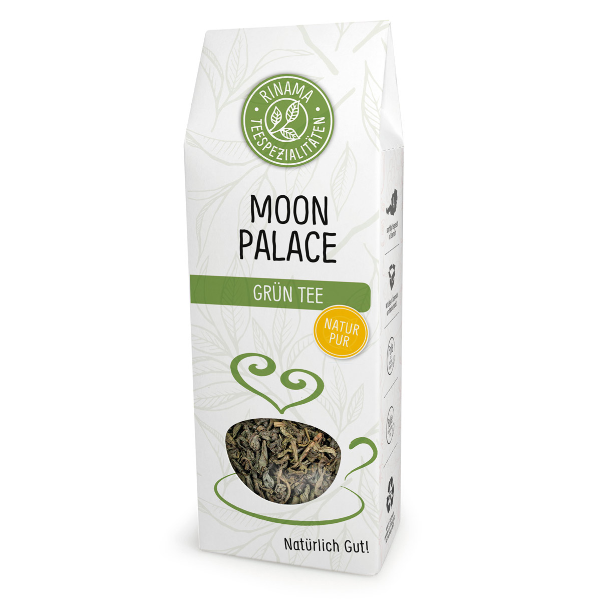 Moon Palace ist ein feiner und erfrischender Grüntee aus China mit kurzem, drahtigem Blatt. Er ist genau der richtige Tee für dich, wenn du es nicht so kräftig magst. Der naturbelassene Grüntee kann mehrfach aufgegossen werden und begeistert mit vollmundigem Geschmack.