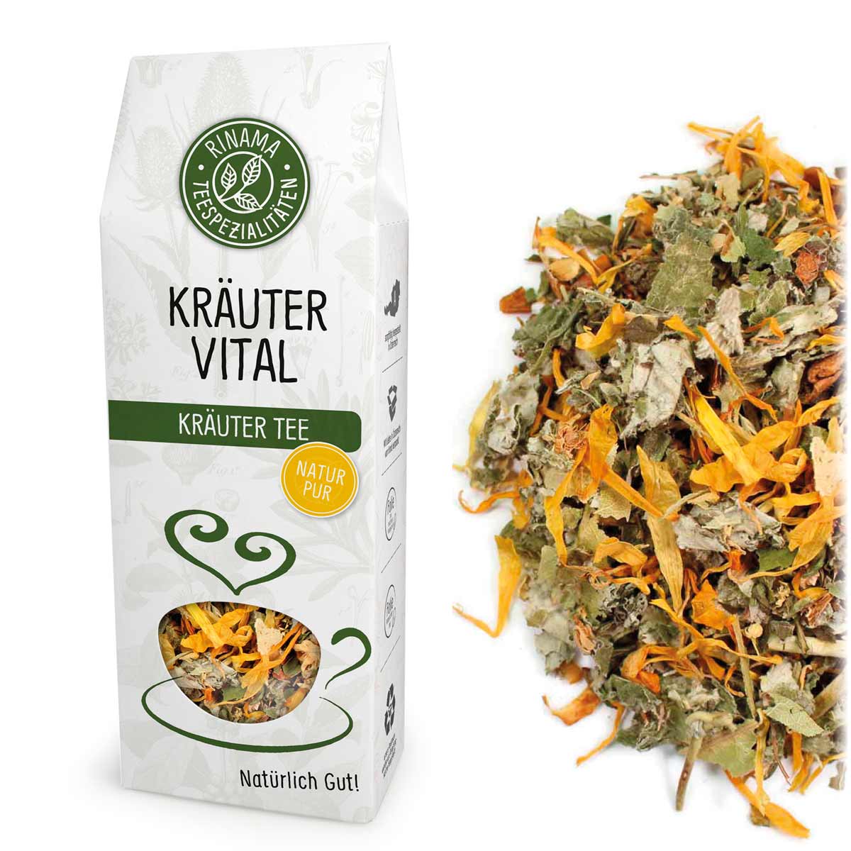 Echter Genuss ohne jegliche Aromatisierung: Kräuter Vital ist ein blumig-herber Tee für einen gesunden Lebensstil. Er eignet sich hervorragend für Kräuter- und Wellnesskuren und sorgt für Vitalität im Organismus. Duftige Lindenblüten und aromatische Pfefferminze geben sich hier mit Früchten, Blüten und Blättern ein Stelldichein.